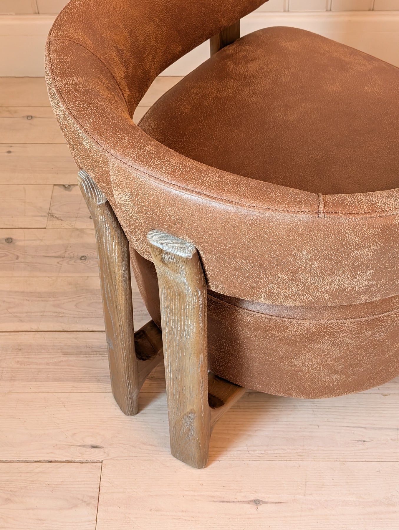 The Brompton chair pairs a beautifully curved back with a sculptural, contemporary silhouette, creating a piece that feels both grounded and refined.