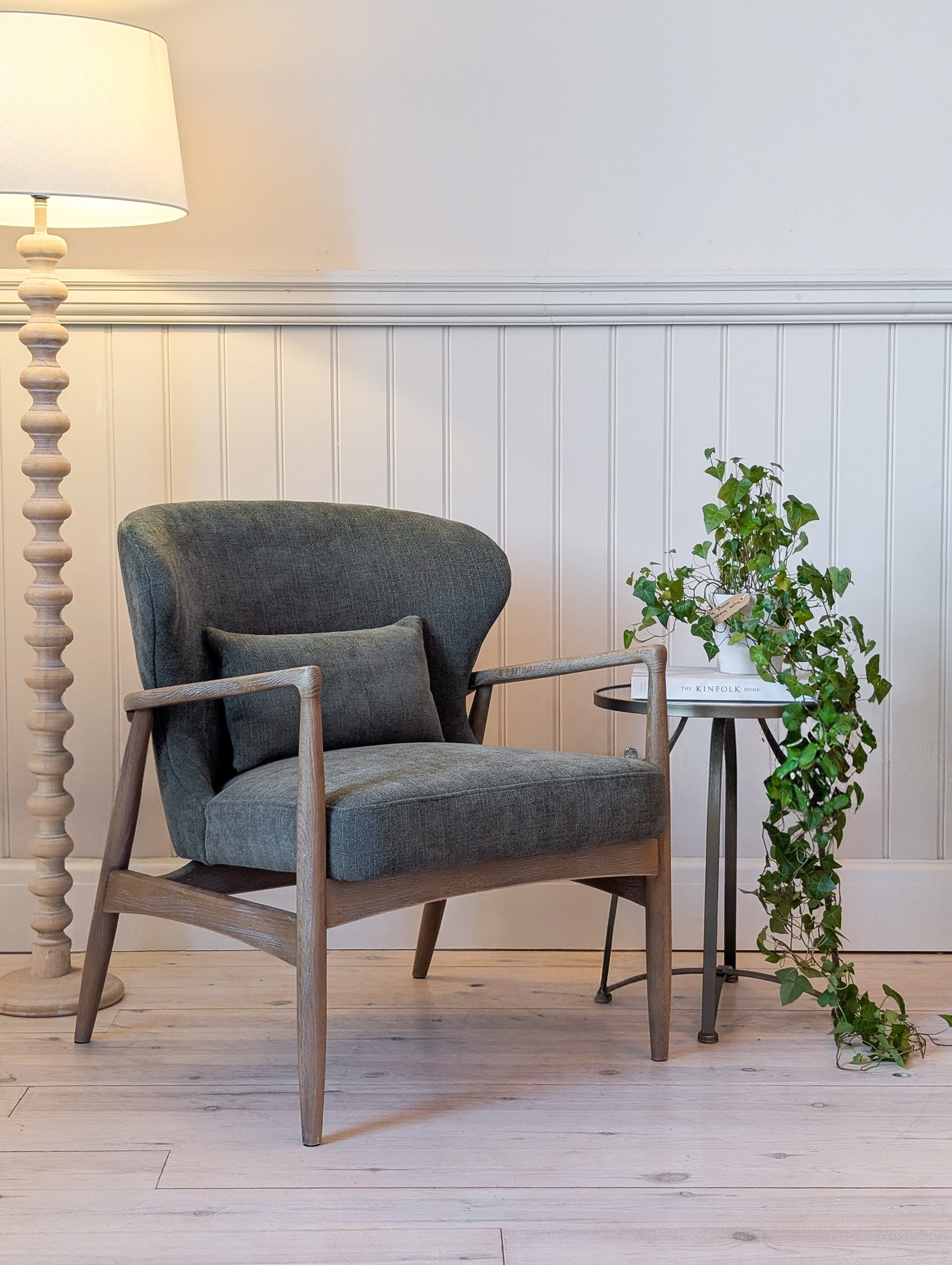 Designed with comfort and character in mind, this armchair is a timeless addition to any space. Its gently shaped back and padded seat offer relaxation that is as practical as it is stylish, while the subtly angled wooden frame adds warmth and balance to the design. The soft textured upholstery makes this the perfect choice for both contemporary and classic interiors alike.