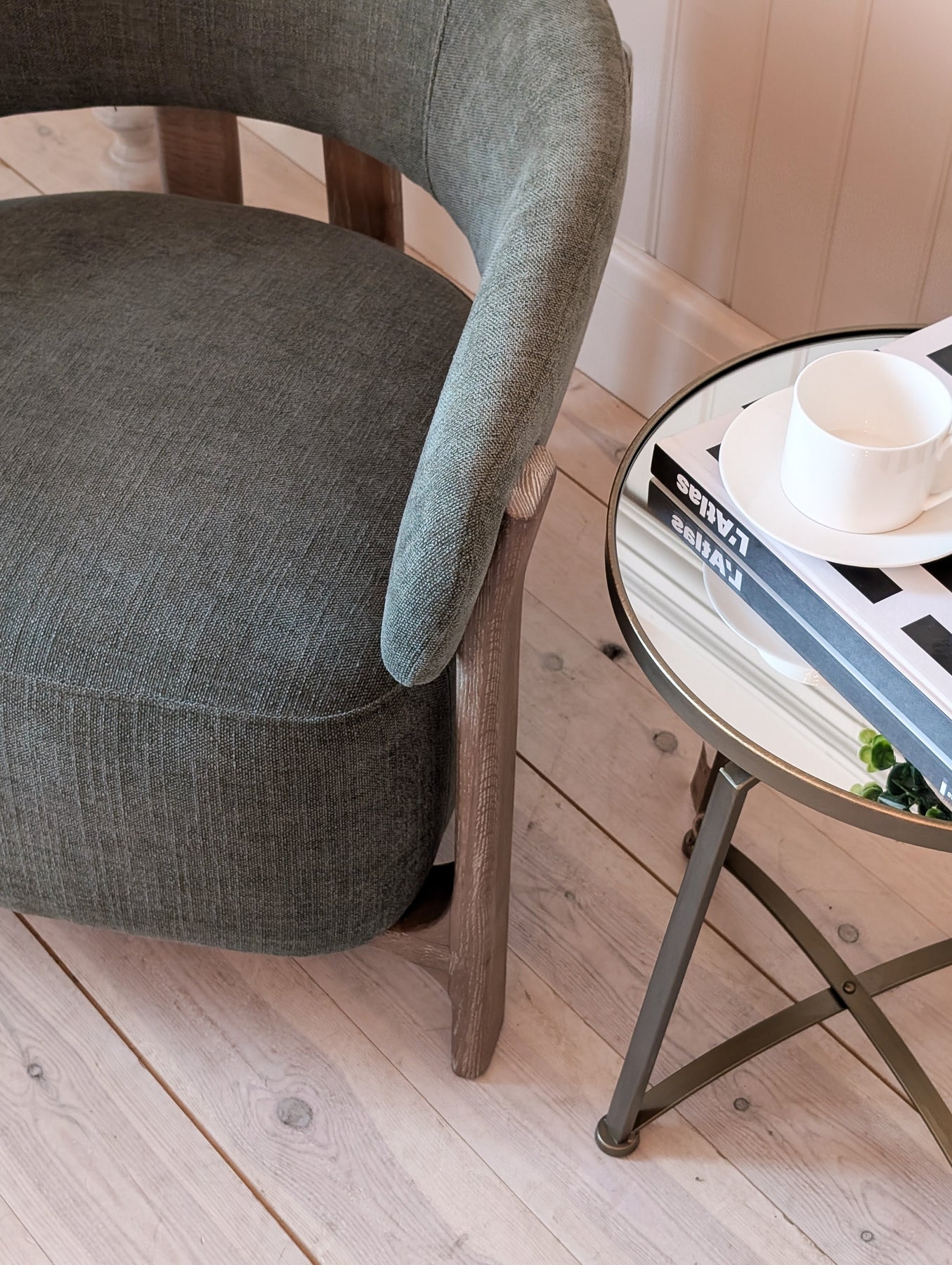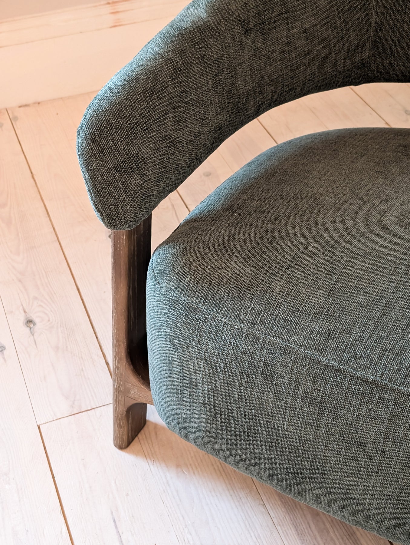 Upholstered in a deep green fabric, this shade acts as the new neutral - rich, grounding and extremely versatile. It brings depth and character to a space and pairs just as easily with warm woods and natural textures as it does with softer, lighter tones.